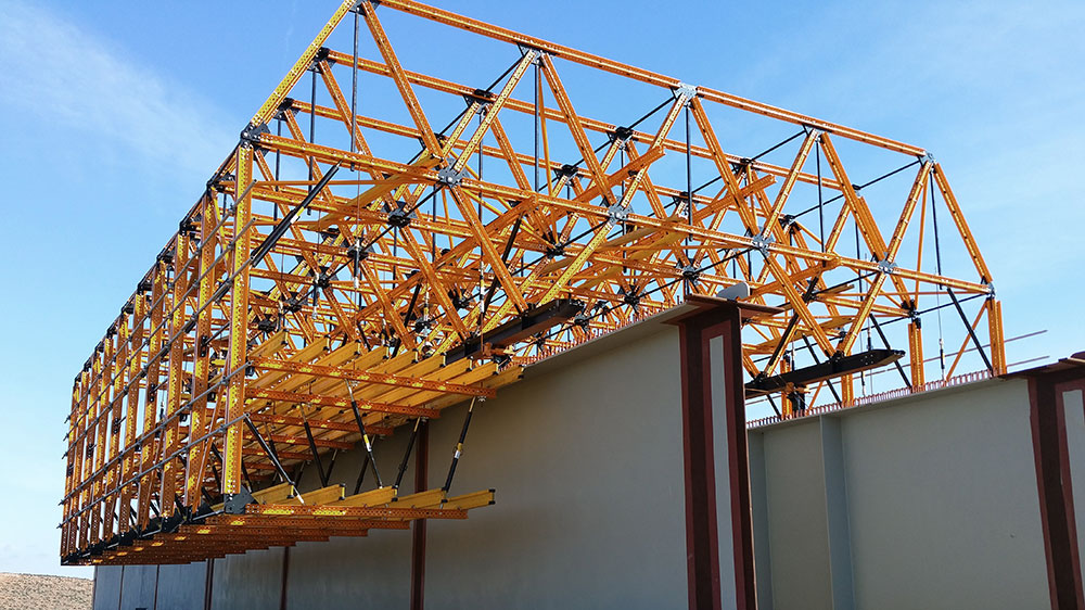 - La taille et le dimensionnement de l’équipage mobile varient en fonction du porte-à-faux. Il est possible de réaliser des outils légers spécifiques pour l’exécution de petites ailes ou de structures plus lourds pour la construction de sections à voussoirs plus importantes.