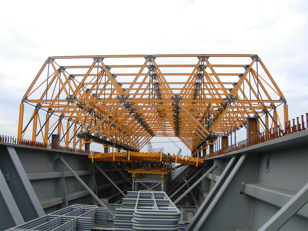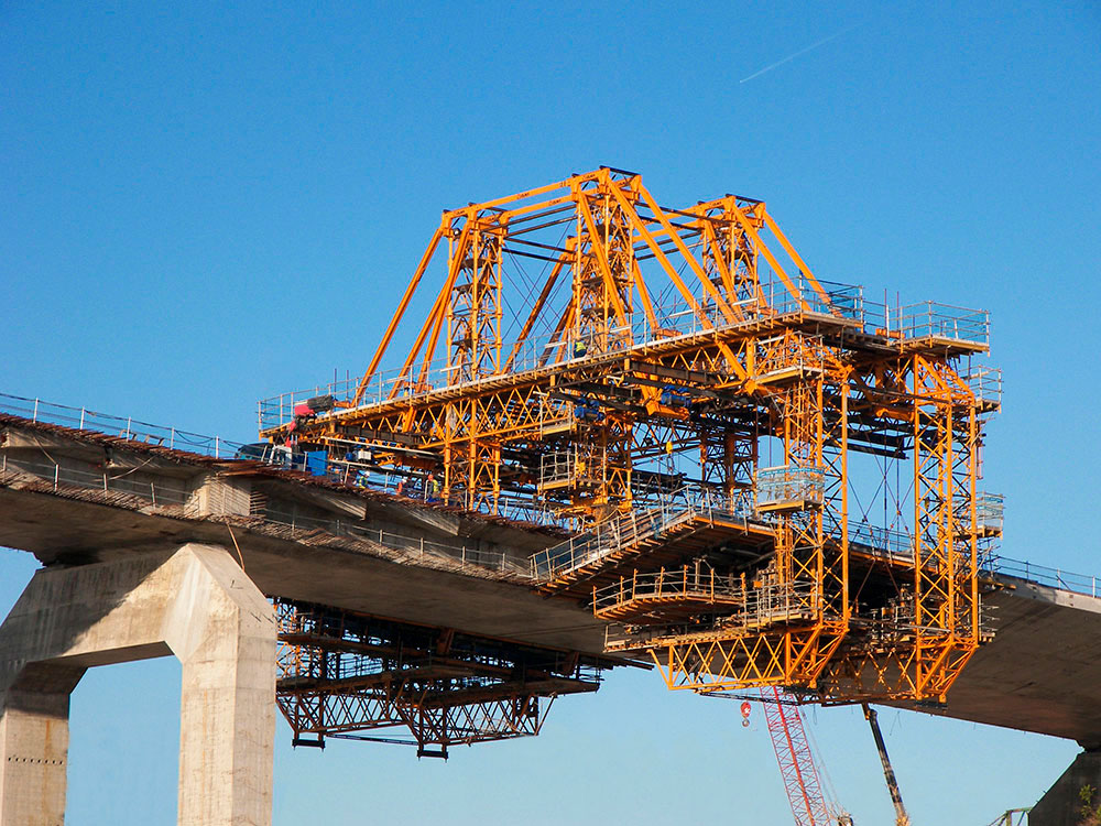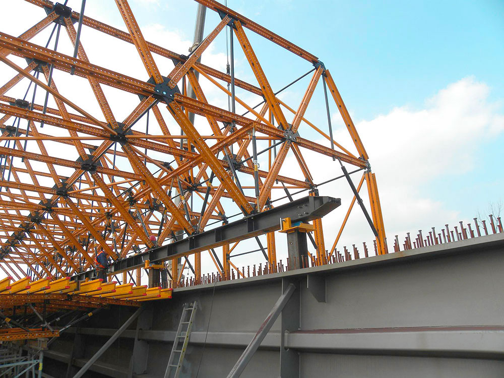 L’équipage mobile pour ponts mixtes est un système de coffrage flexible et efficace, principalement conçu pour la construction de ponts métalliques et de ponts partiellement préfabriqués pour lesquels le bétonnage des ailes du tablier est nécessaire.