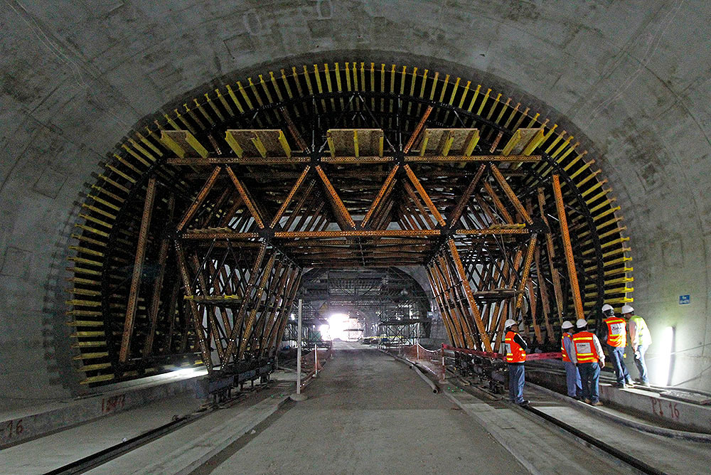 Le système de coffrage MK pour tunnels se compose d’un chariot mobile léger qui supporte tant la structure que le coffrage. Il est principalement destiné aux ouvrages de génie civil, en particulier la construction de tunnels d’une longueur allant jusqu’à 1 km : stations de métro, connexions entre tunnels, galeries hydrauliques, etc.