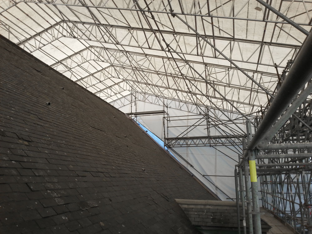 Elles permettent la mise provisoire hors d’eau d’un ouvrage afin de permettre des travaux de réhabilitation importants de toiture, par exemple. Ces protections confinent le chantier et protègent ainsi les piétons contre d'éventuelles chutes d’objets.