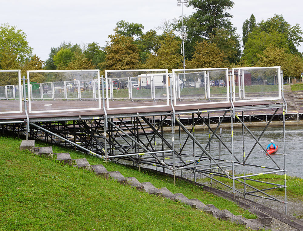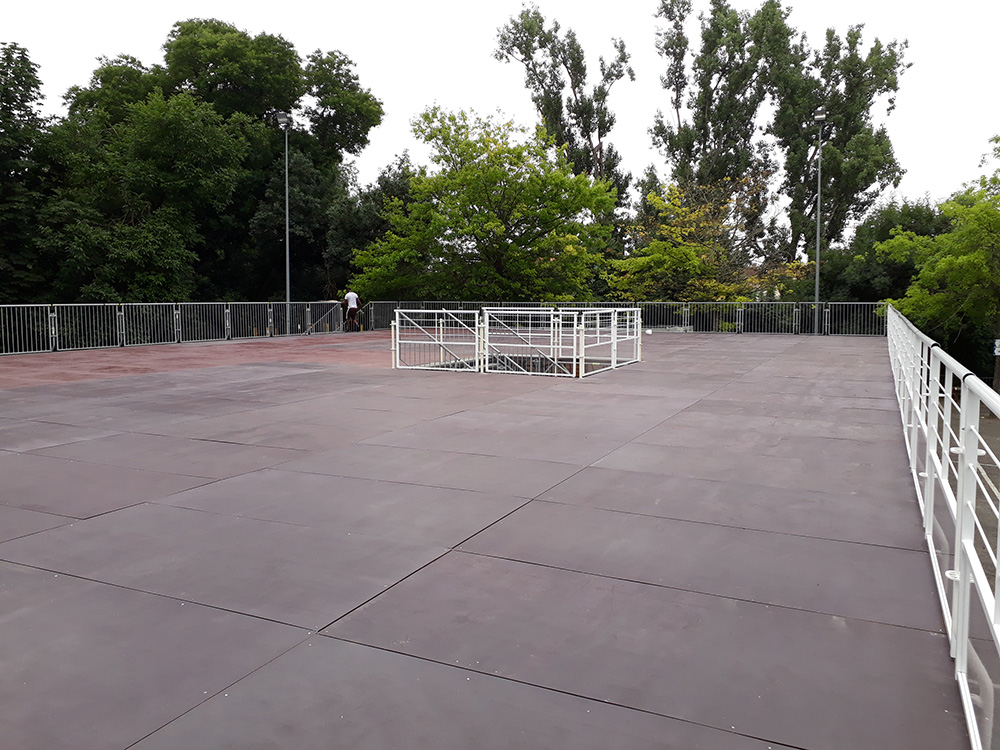 Ces plateformes, peuvent être construites en hauteur, permettant de franchir toutes sortes d’obstacles (fontaines, rebords, jardins, etc..) et combinées avec les passerelles ou escaliers d’accès public permettant créer toute une infrastructure d’accès et d’exploitation des installations événementielles.