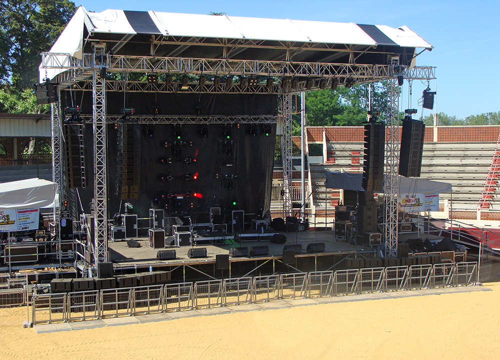 - Multiples dimensions et gamme très large de compléments de production et accessoires pour obtenir la flexibilité maximale. (Rampes, régies, escaliers, plateformes, ailes de son, tours, etc..).