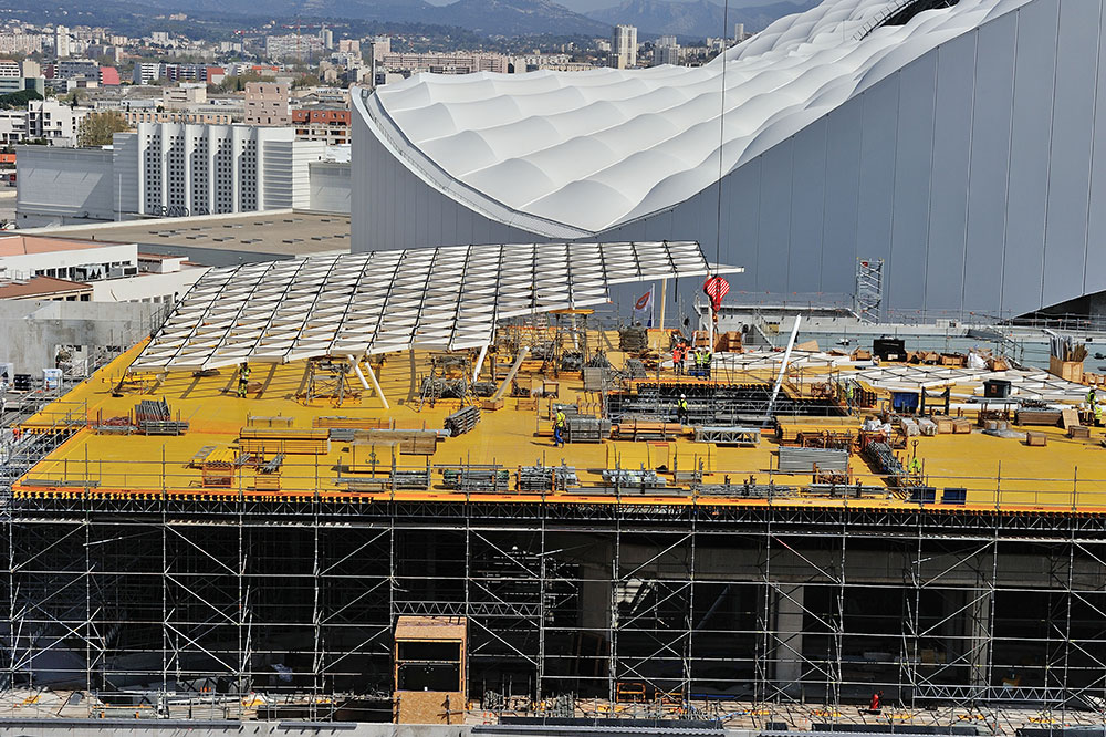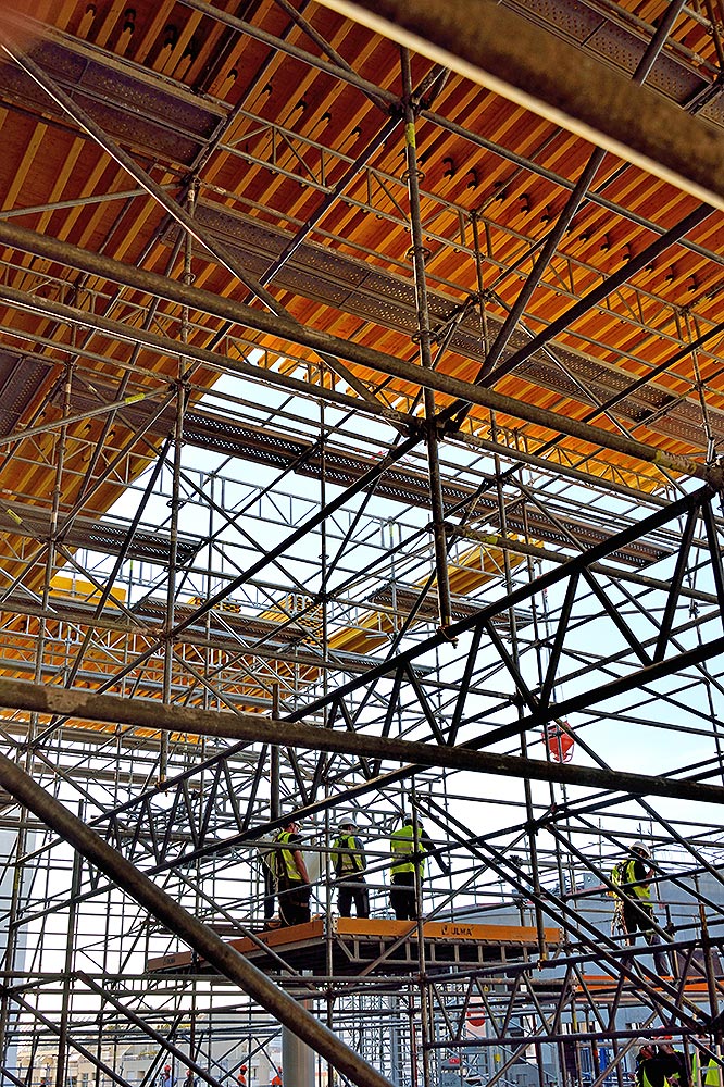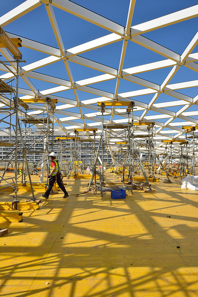 Pour ce projet hors norme, ULMA Construction a réalisé une plateforme de près de 3500 m² avec 330 tonnes de matériel à une hauteur de travail de 26 m.