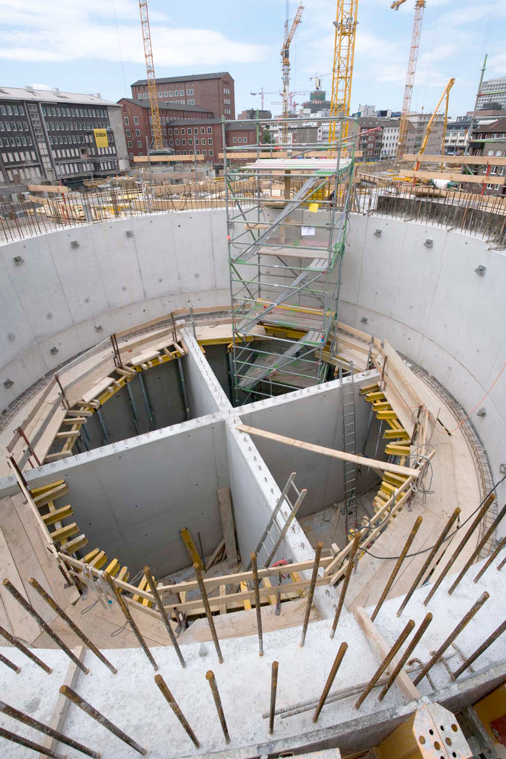 Le coffrage vertical ORMA s’adapte avec précision à l’exécution des voiles et des cages d’escaliers. Sa large gamme de panneaux permet de former et d’unir simplement de grands ensembles, et d’exécuter des angles autres que 90° avec peu d’accessoires.