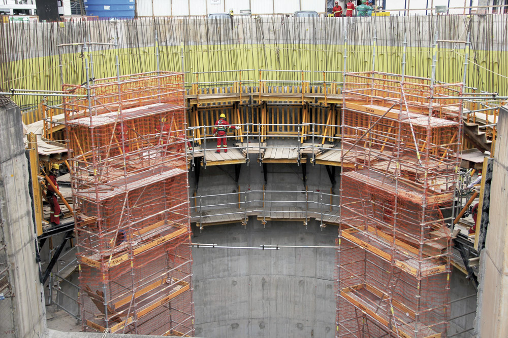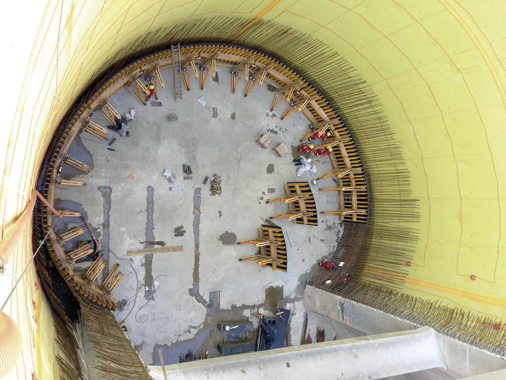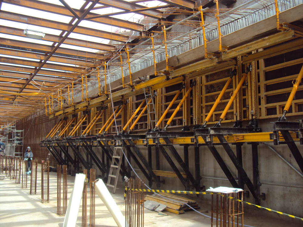 Les piliers centraux du tunnel, de plus de 5,5 m de haut, ont été réalisés en une seule phase de bétonnage et présentent une finition parfaite. Le système ENKOFORM VMK a répondu à toutes les exigences du client.