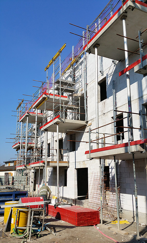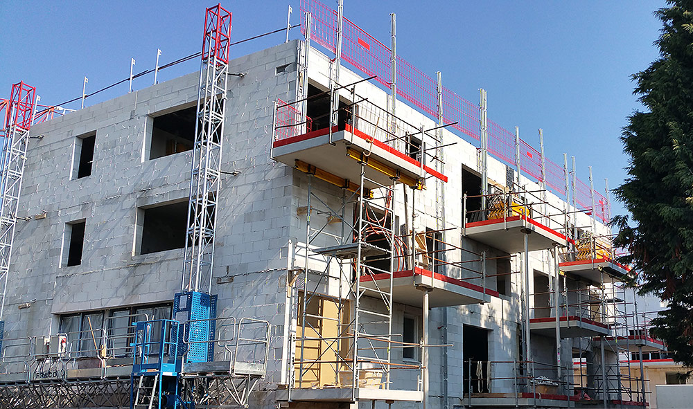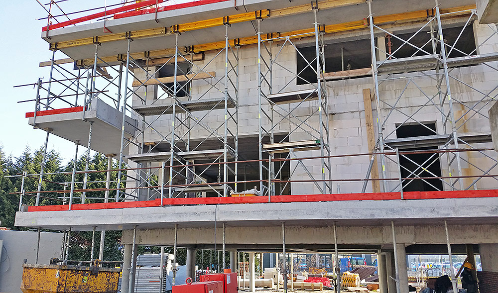 Au total près de 60 tonnes de matériel ont été mis en œuvre comme le coffrage de dalle modulaire CC4 ; la tour d’étaiement légère et flexible TE40 ainsi que l’échafaudage multidirectionnel BRIO, résistant et polyvalent pour ce type de travaux nécessitant une rotation intensive du matériel. Enfin l’étais aluminium ALUPROP s’est révélé l’outil parfait pour l’étaiement des balcons sur plusieurs niveaux.