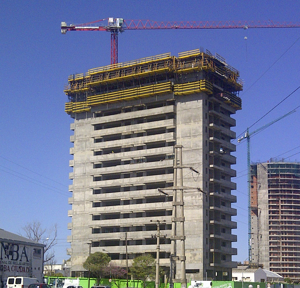 Chaque tour est composée d’un noyau central en béton. On y trouve les installations verticales et une fermeture périmétrique extérieure en béton avec de grands panneaux vitrés, et quelques colonnes intérieures.
