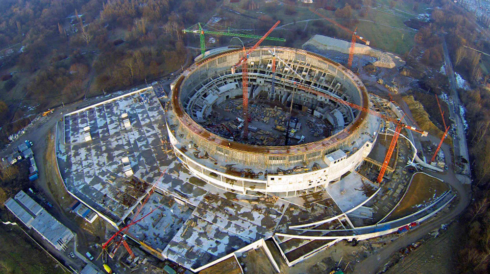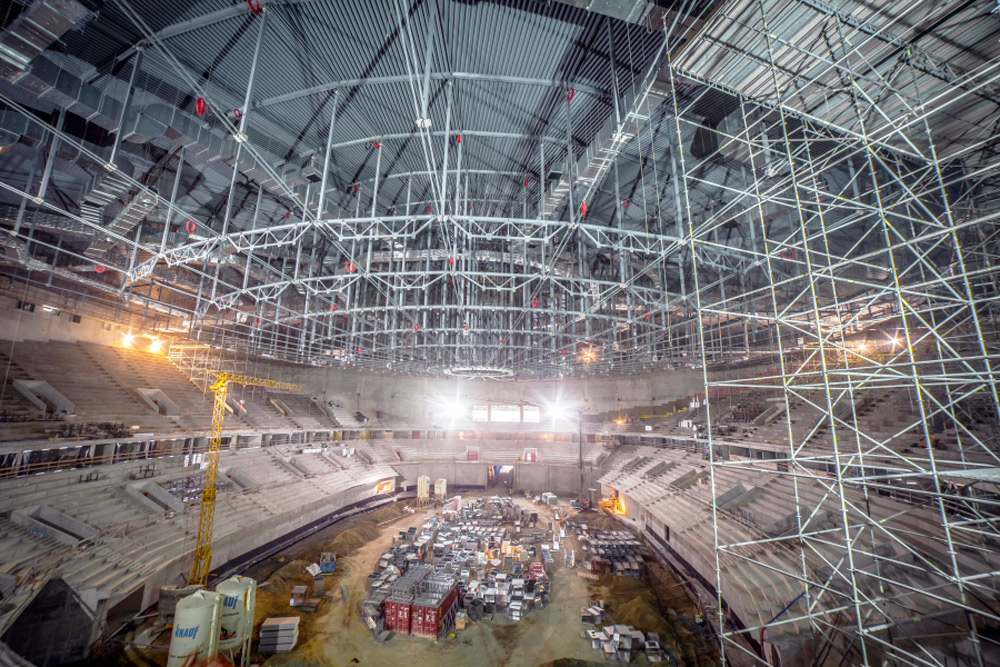 Après plusieurs années de préparation, le projet de construction de la plus grande salle omnisports de Pologne a enfin vu le jour. Au total, ce complexe fait près de 97 000 m², l’enceinte sportive principale atteignant les 4300 m².