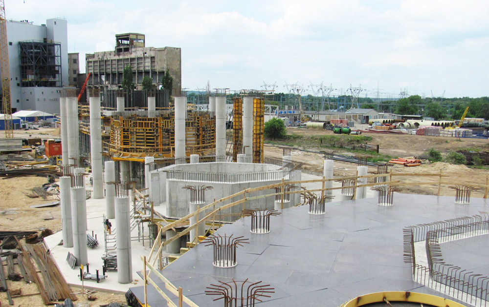 Les voiles des silos (15 m) ont été exécutés en trois phases, avec un coffrage de 6 m de haut (2 x 3 m) pour les deux premières et 3 m pour la dernière.