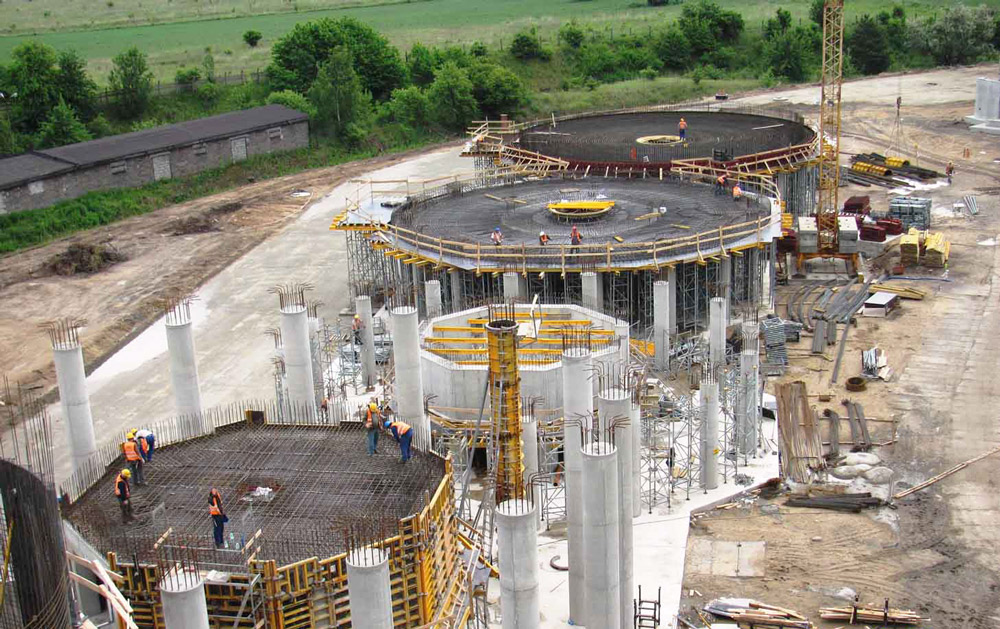 Pour le stockage de la biomasse, huit silos en béton armé ont été construits, avec une capacité de 1 000, 6 000 et 8 000 m³. Les voiles des réservoirs de 30 cm d’épaisseur incluant un rayon interne entre 9 et 22 m, avec des hauteurs allant de 13 à 19 m. La couverture métallique atteint 35 m de hauteur.