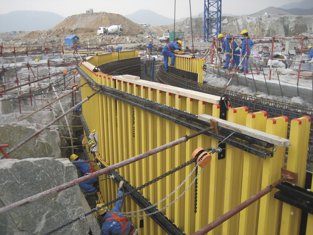 Le toit du réacteur a été construit avec 80 panneaux de coffrage ENKOFORM V-100: 40 à l’intérieur et autant à l’extérieur, avec des épaisseurs variant de 3,7 à 4,36 m, et une hauteur de 3,6 m.