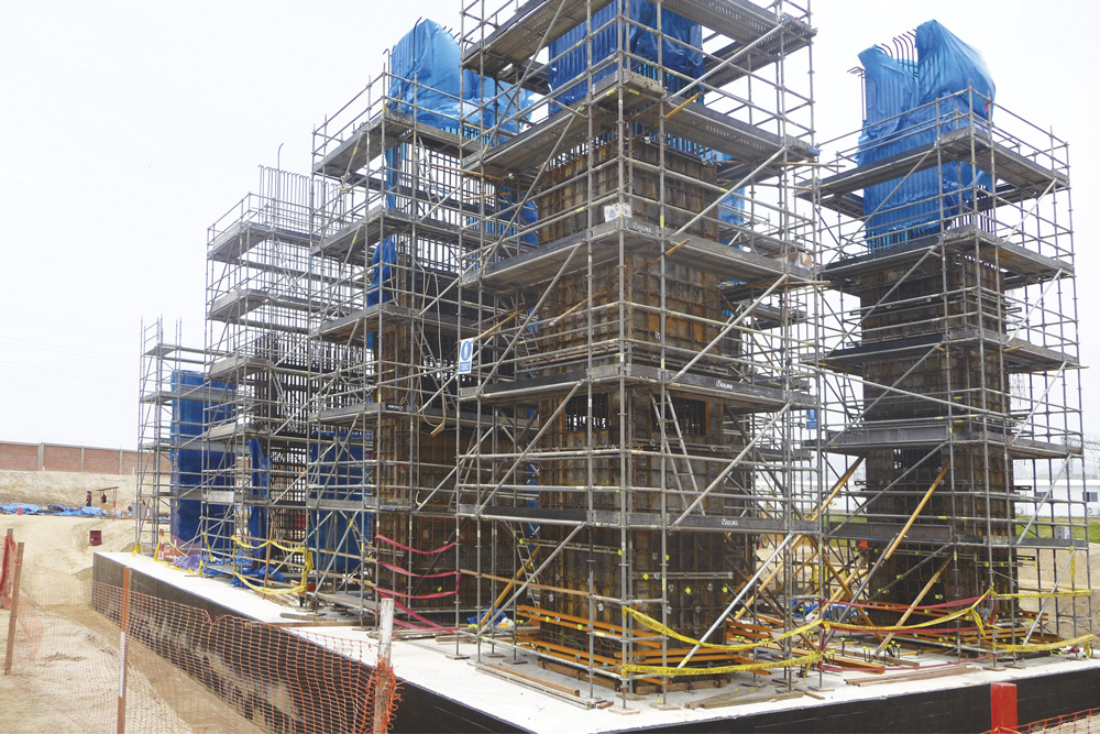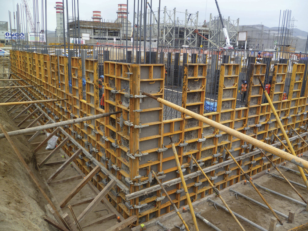 Le bâtiment de la turbine constituait la structure la plus complexe du projet, où les poteaux et les poutres ont été réalisés à l’aide du système de coffrage vertical NEVI. Par ailleurs, le système d’étaiement BRIO a été employé pour étayer les poutres inclinées à 12 m de hauteur et coffrées avec le système ENKOFORM H-120.