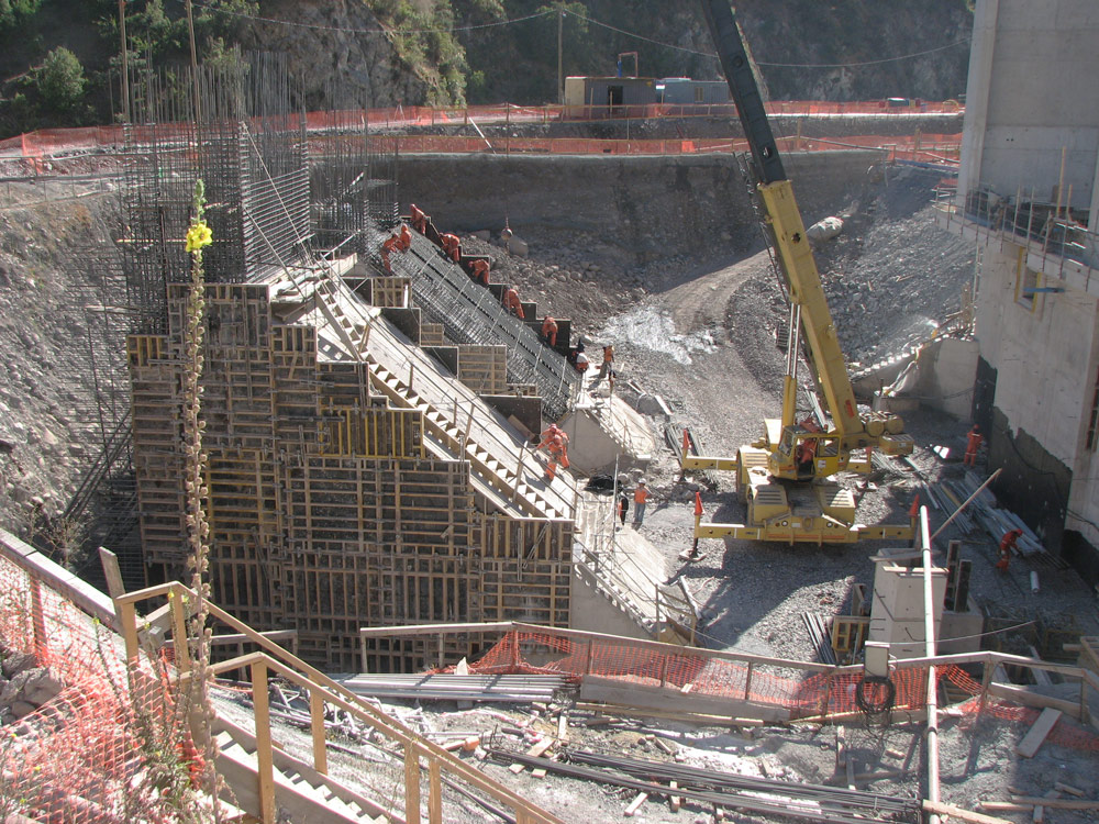 Le projet comprend la construction de plusieurs structures: salle des machines, salle des vannes, tunnels, réservoir… pour lesquels plus de 100 000 cubes de béton ont été utilisés.