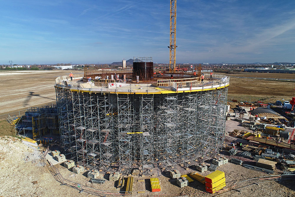 Certaine Tour ont été assemblées hors zone de travail, puis grutées à l’intérieur du château d’eau afin de faciliter l’approvisionement et de ne pas surcharger la zone de travail.