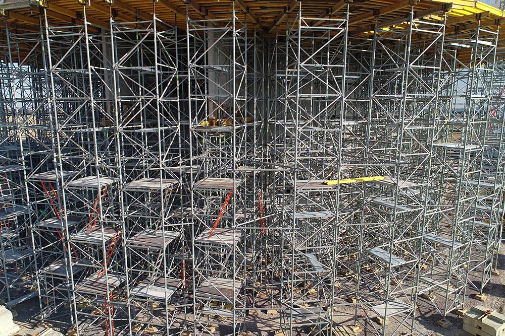 Un étaiement circulaire, équipé de Tours T-60, a été réalisé pour que les entreprises puissent travailler en sécurité et respecter les délais.