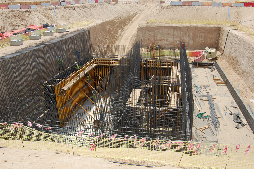 La station de Jebel Ali à Dubaï comprend une surface de 300 m², des voiles d’une hauteur de 2,2 à 7,3 m et des dalles de 25 cm d’épaisseur.