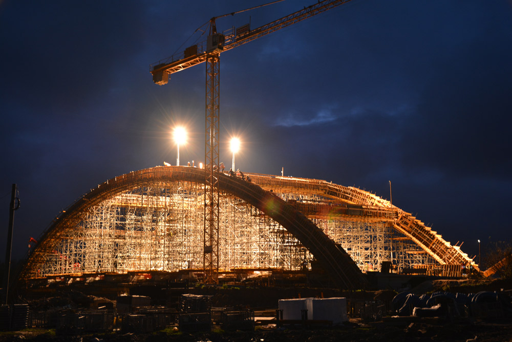 Pour le tablier, nous avons utilisé le coffrage ENKOFORM VMK et des entretoises métalliques MK reliées à l’aide de poutres en bois.