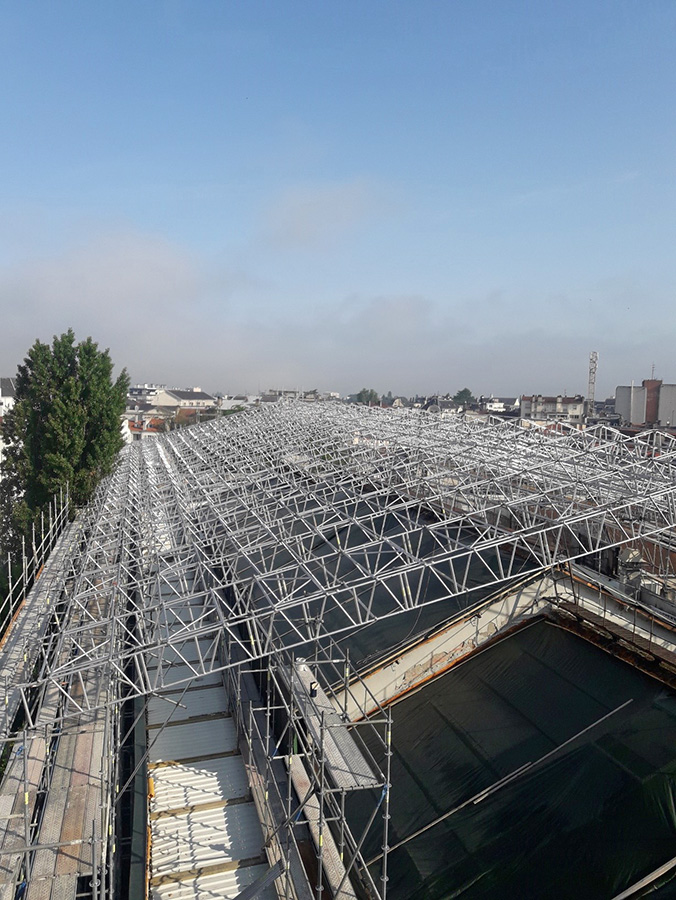Le confinement obtenu par cette protection ont permis à l’entreprise de travaux d’exécuter les opérations sur les toitures et sur l’ensemble de l’ouvrage en toute sécurité.