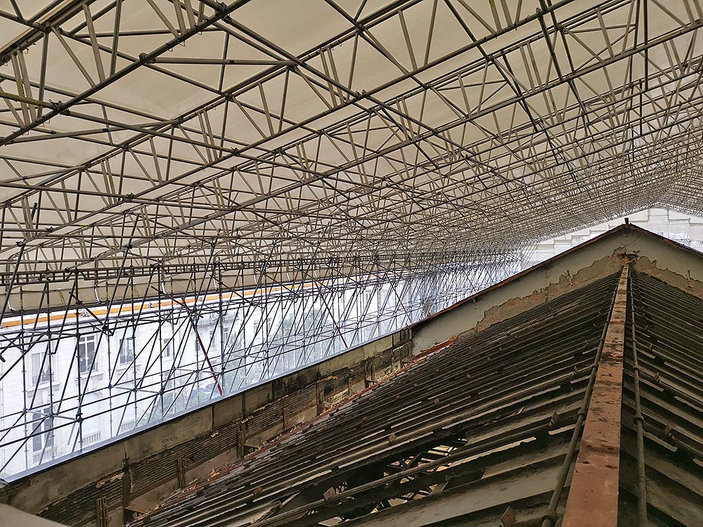 ULMA, par son expérience des montages en environnement complexes et les compétences de ses techniciens, a su concevoir un échafaudage adaptés et résistant mis en place pour plusieurs années.
