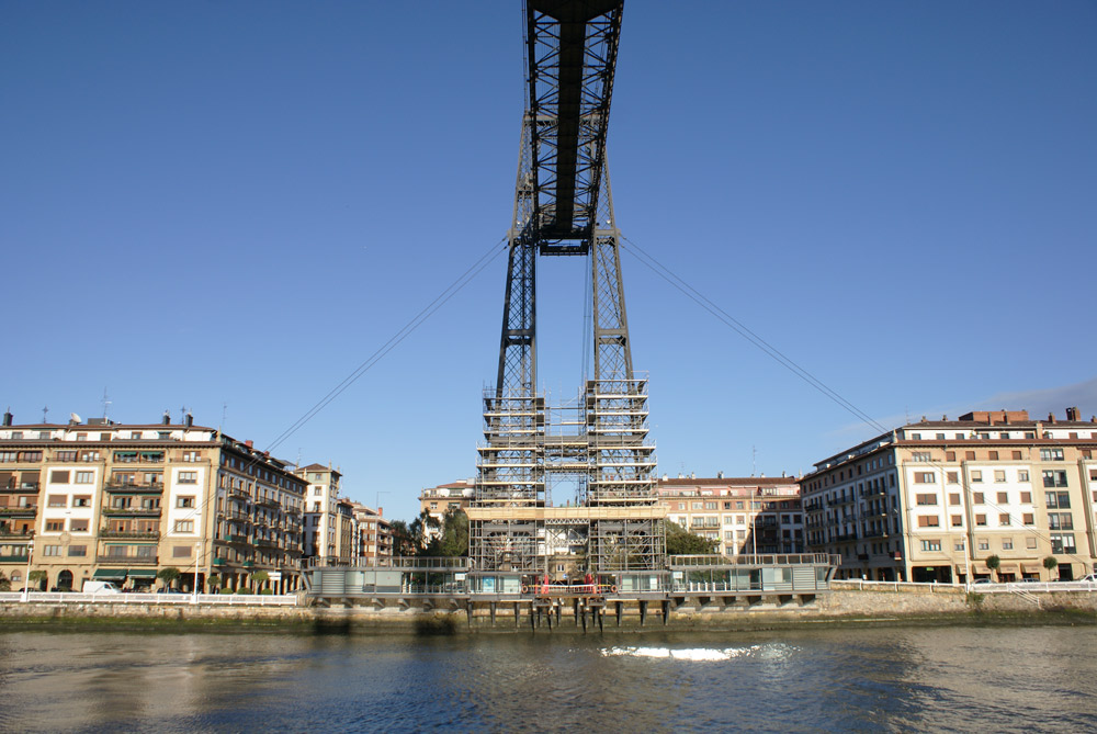 Déclaré Patrimoine de l’Humanité par l’UNESCO en 2006, Le Pont Suspendu ou pont de Biscaye est le symbole de la révolution industrielle de la fin du XIXe siècle. C’est le plus vieux pont transbordeur au monde. ULMA a entrepris la rénovation la plus importante de ces dernières décennies. Le projet a débuté fin 2010 avec les peintures de la structure métallique après une décision collégiale parmi usagers et experts sur le choix de la couleur. Le tablier qui soutient les rails auquel la nacelle est suspendue nécessitait aussi une réparation après les dommages causés par la guerre civile.