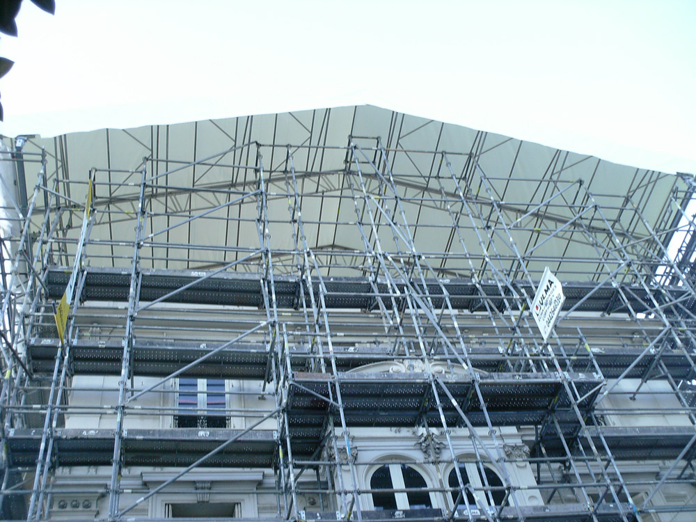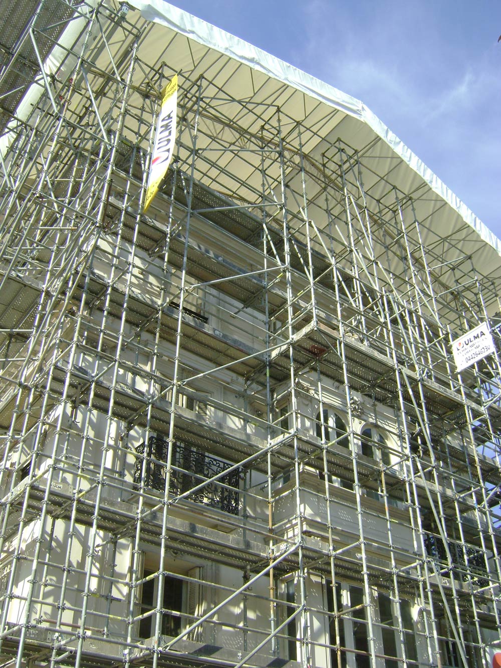 En raison des nombreuses opérations de grutage pour acheminer le matériel pendant toute la durée du chantier, ULMA a adopté la solution de deux toitures roulantes permettant leur ouverture et leur fermeture temporaire. Par ailleurs, c’est l’échafaudage multidirectionnel BRIO qui a été choisi pour recouvrir l’ensemble du bâtiment en dépit de la complexité géométrique de ce dernier. Des planchers de travail à différents niveaux ainsi que les passages piétons sur la voie publique ont été fournis.