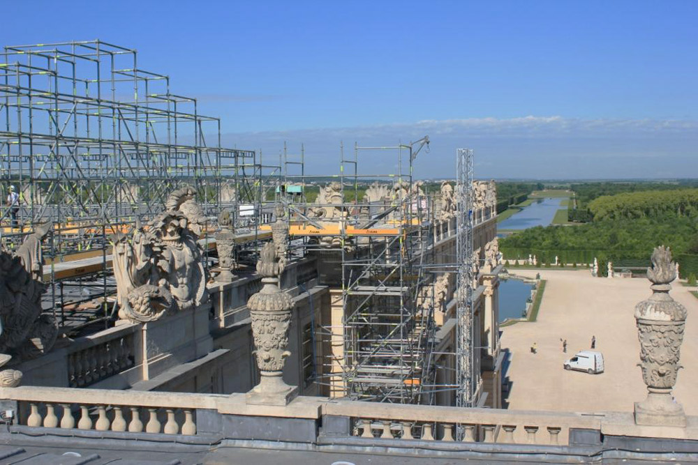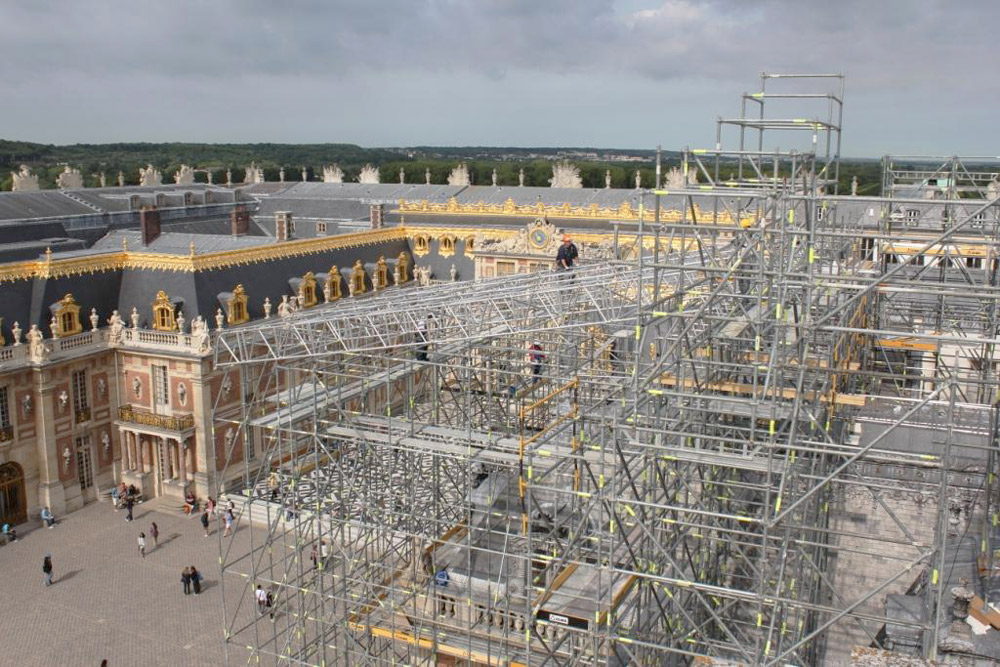 La restauration de la résidence des monarques français et un site classé au patrimoine mondial de l’humanité par l’UNESCO, a impliqué de nombreux travaux depuis les échafaudages.