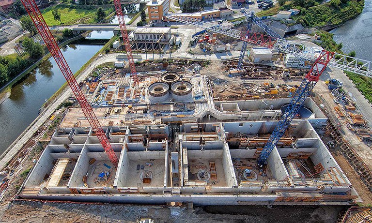 Le projet se compose de deux actions mises en œuvre sur une surface de 400 000 m2 et qui nécessitent près de 500 000 m3 de béton : la rénovation de la station de traitement déjà existante sur l’île de Císařský Ostrov et l’extension des installations. Cette expansion a été baptisée « New Water Line », à savoir une ligne indépendante de procédés mécanique et biologique accompagnée d’un traitement chimique additionnel. La technologie utilisée sur cette nouvelle ligne permettra de respecter les limitations des émissions relatives aux « zones sensibles » établies par le Conseil européen. Avec ces interventions, la station réalisera 40 % du processus de traitement des eaux, tandis que la nouvelle ligne s’occupera du reste. La mise en marche et la vérification se prolongeront sur une année.
