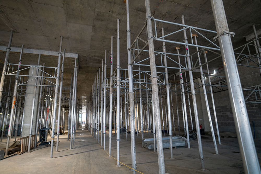 En outre, des tours d’étaiement ALUPROP ont été installées pour soutenir les chapiteaux et les dalles jusqu’à 10 mètres de hauteur. Fabriquées en aluminium, elles associent une capacité de charge élevée à un poids léger, ce qui facilite leur manipulation, leur montage et leur transport. Elles peuvent s’empiler, et avec leur capacité d’étaiement, cela permet d’atteindre de grandes hauteurs tout en maintenant la sécurité et la stabilité de la structure, tandis que leur polyvalence permet de répondre à la fois aux exigences d’étaiement initial et de réétaiement.