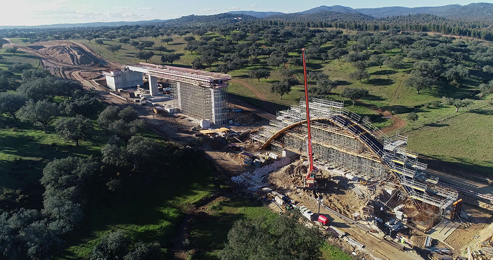 Le tronçon Freixo - Alandroal compte 10 viaducs et 16 passages supérieurs. Outre la fourniture de nombreux équipements, la performance va de pair avec la sécurité. Lors de la construction des différents panneaux, nous avons fourni 20 000 m³ d’étaiement OC et près de 4 000 m² de coffrage ENKOFORM. Nous avons installé 3 600 m² de coffrage ORMA et 10 ensembles de coffrage pour poteaux et semelles combinant ENKOFORM et ORMA, ainsi que 280 mètres d’escaliers et 10 500 m² d’échafaudages BRIO.