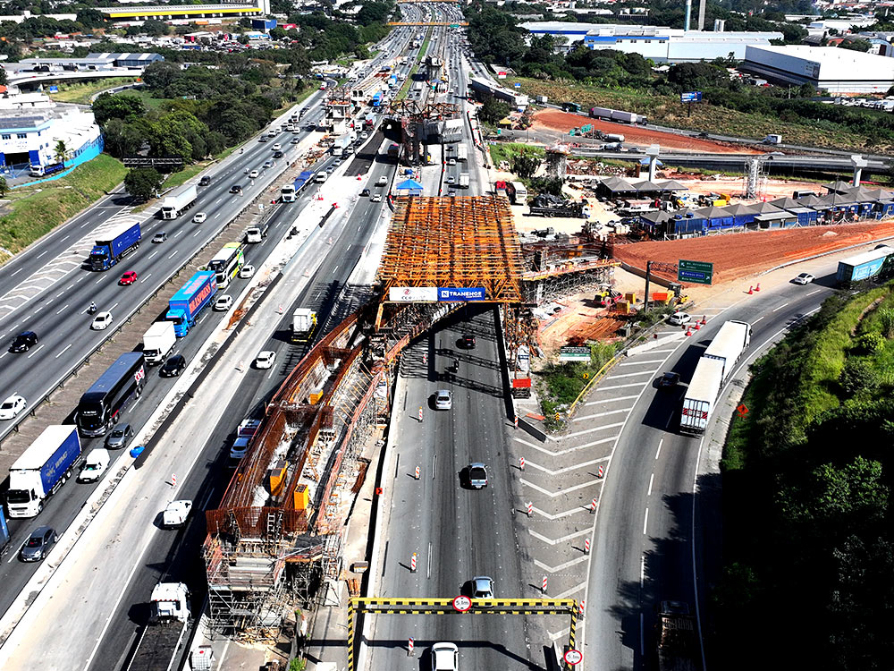 L’un des principaux défis a été de construire des viaducs avec des travées allant jusqu’à 75 mètres sans interrompre le trafic de la Via Dutra, considérée comme la route la plus fréquentée du Brésil. Ce chantier a nécessité des solutions de coffrage, des étais et des échafaudages alliant sécurité, précision technique et rapidité d’exécution.