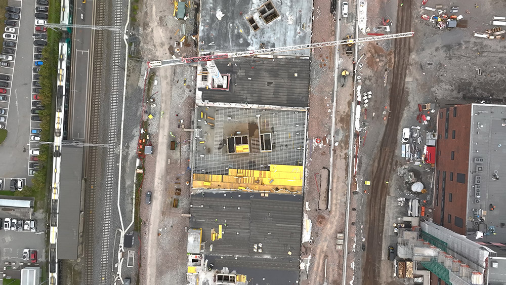 Le parking mesure environ 200 x 40 mètres. Un mur de rétention de 3,5 mètres de haut, bétonné sur une seule face, a été réalisé tout autour. C’était indispensable du fait de l’emplacement souterrain de la structure. Pour ce faire, des coffrages une face SMK d’une longueur de 20 mètres ont été utilisés en combinaison avec le coffrage modulaire ORMA. Cette configuration a non seulement facilité le montage et le décoffrage, mais a également permis de prendre en charge efficacement et en toute sécurité toutes sortes de géométries. De plus, cela a permis de réutiliser le matériel à différentes étapes du chantier, optimisant ainsi l’utilisation des ressources, le travail de la main-d’œuvre et les temps de mise en place.