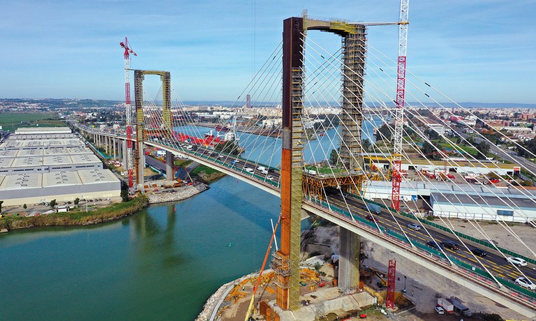 Type : pont haubané avec tablier mixte acier-béton Longueur : 700 m Portée maximale : 100 m Largeur : 30 m Hauteur maximale des piles: 30 m