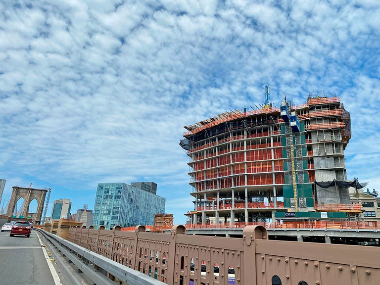 Conçu par Hill West Architects et développé par Fortis Property Group, le nouveau bâtiment continue de prendre de la hauteur dans le quartier de Dumbo à Brooklyn. Ce quartier est connu pour son offre artistique et culturelle, ses restaurants et ses vues spectaculaires sur la skyline de Manhattan.