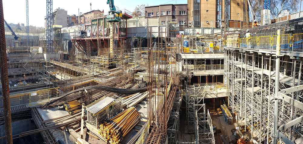 Grâce à leur grande polyvalence, qui leur permet de s’adapter à de nombreuses configurations, la tour d’étaiement BRIO, les étaiements formés par les étais en aluminium ALUPROP associés à des cadres de contreventement et les tours d’étaiement T-60 ont été choisis pour l’étaiement à des hauteurs de 2 m et des dalles de cinq étages, jusqu’à des hauteurs de 30 m.