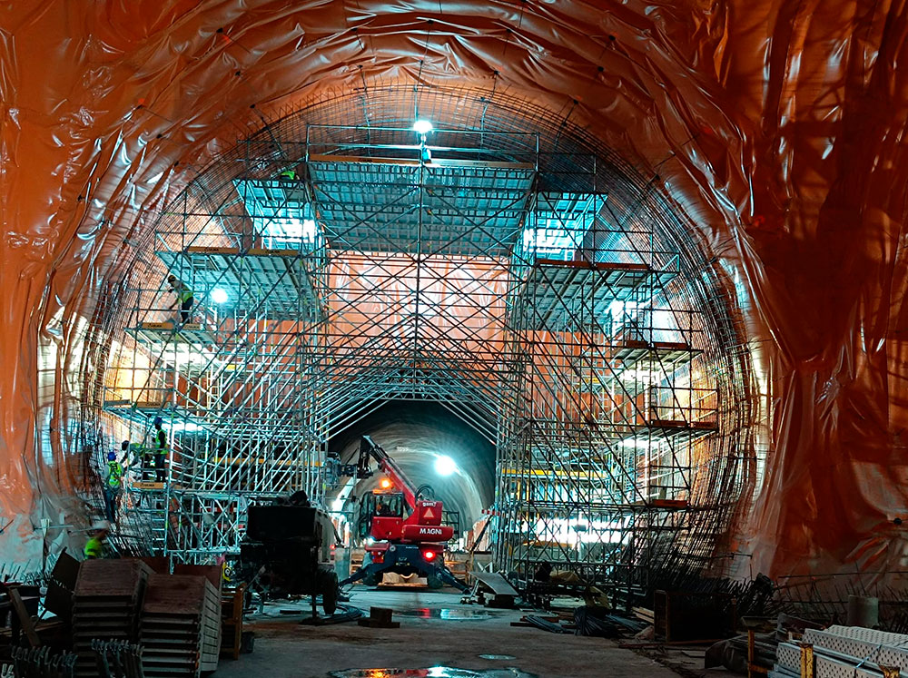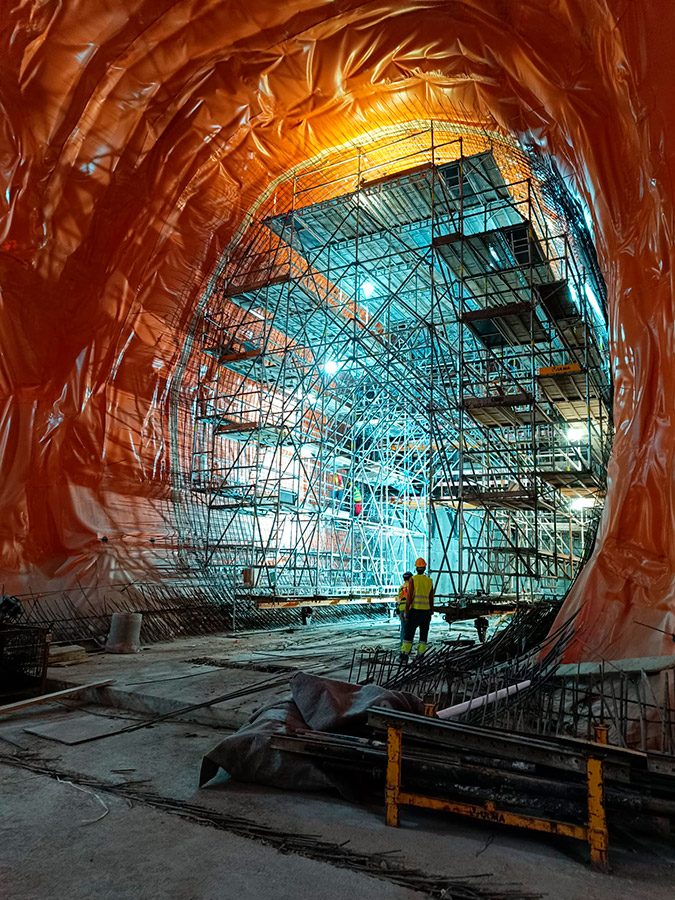 La collaboration entre ZAGOPE et ULMA durant toutes les phases du projet a été essentielle et a permis de trouver des solutions innovantes pour surmonter toutes les difficultés techniques. Les solutions de coffrage et d’étaiement d’ULMA ont permis de réaliser des voiles droits à cintrés, s’adaptant à des géométries complexes, à des dalles de différentes épaisseurs et supportant des structures de grande envergure. Les chariots d’échafaudage BRIO, capables de supporter plus de 20 t, ont été essentiels pour les travaux de pose d’armatures et les chariots de coffrage MK pour le bétonnage des parois du tunnel, démontrant ainsi la robustesse et la polyvalence des systèmes ULMA. L’équipe d’ULMA a été présente de la conception initiale à la livraison finale, apportant son expertise dans chaque phase du projet.