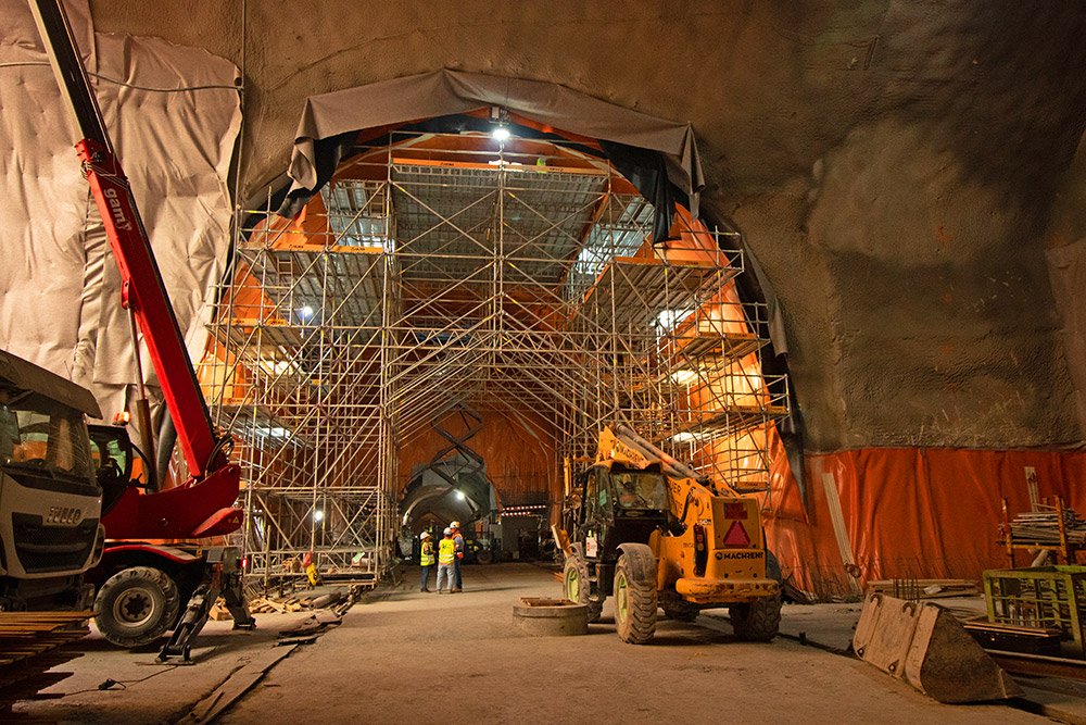Le principal défi de ce projet réside dans l’optimisation de l’espace. Sur ce chantier en centre-ville, le problème des zones de stockage limitées a été résolu grâce à la réutilisation intelligente des matériaux et des solutions à l’intérieur. La coordination a été fondamentale : six chariots de coffrage et d’échafaudage ont été utilisés simultanément dans le tunnel. Cette stratégie a permis d’optimiser l’efficacité dans un environnement où l’espace est limité.