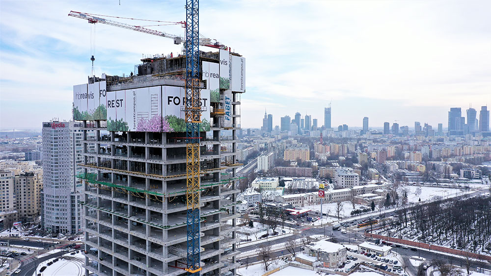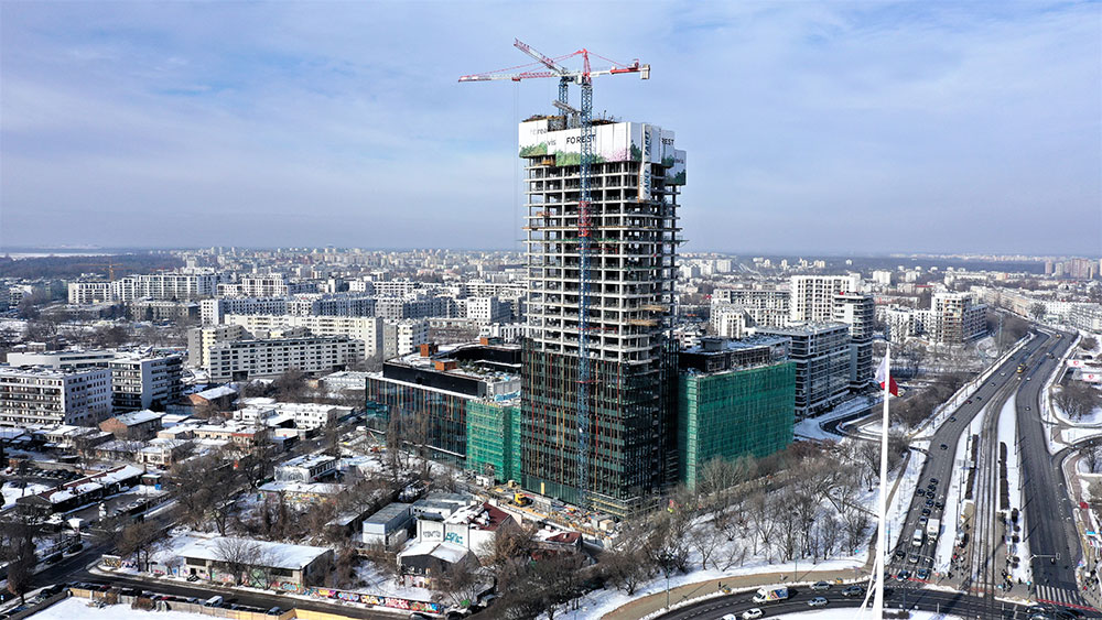 Le complexe de bureaux Forest fournira une superficie locative de 78 000 m² à la ville de Varsovie, y compris des cafés et des établissements de services. L’ensemble se compose d’une tour de 120 mètres de haut et d’autres édifices adjacents de 6 et 8 étages.